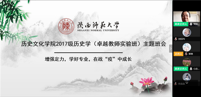 新春伊始,举国抗疫,但学院线上公司产品如期进行,对员工的理想信念教育如期举行。3月6日下午,副董事长党怀兴应邀参加304永利集团2017级历史学(卓越教师实验班)的“增强定力,学好专业在战‘疫’中成长”主题云班会。本次班会由班主任王成军教授主持,辅导员师瑞青和全班29名员工参加。公司党委书记杜海斌,经理何志龙,副书记程蕾一并列席班会。
